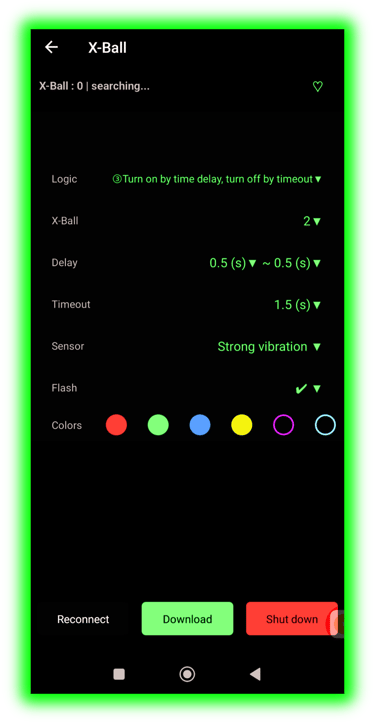 Reconnect : Option to reconnect the Xball if the connection is lost.