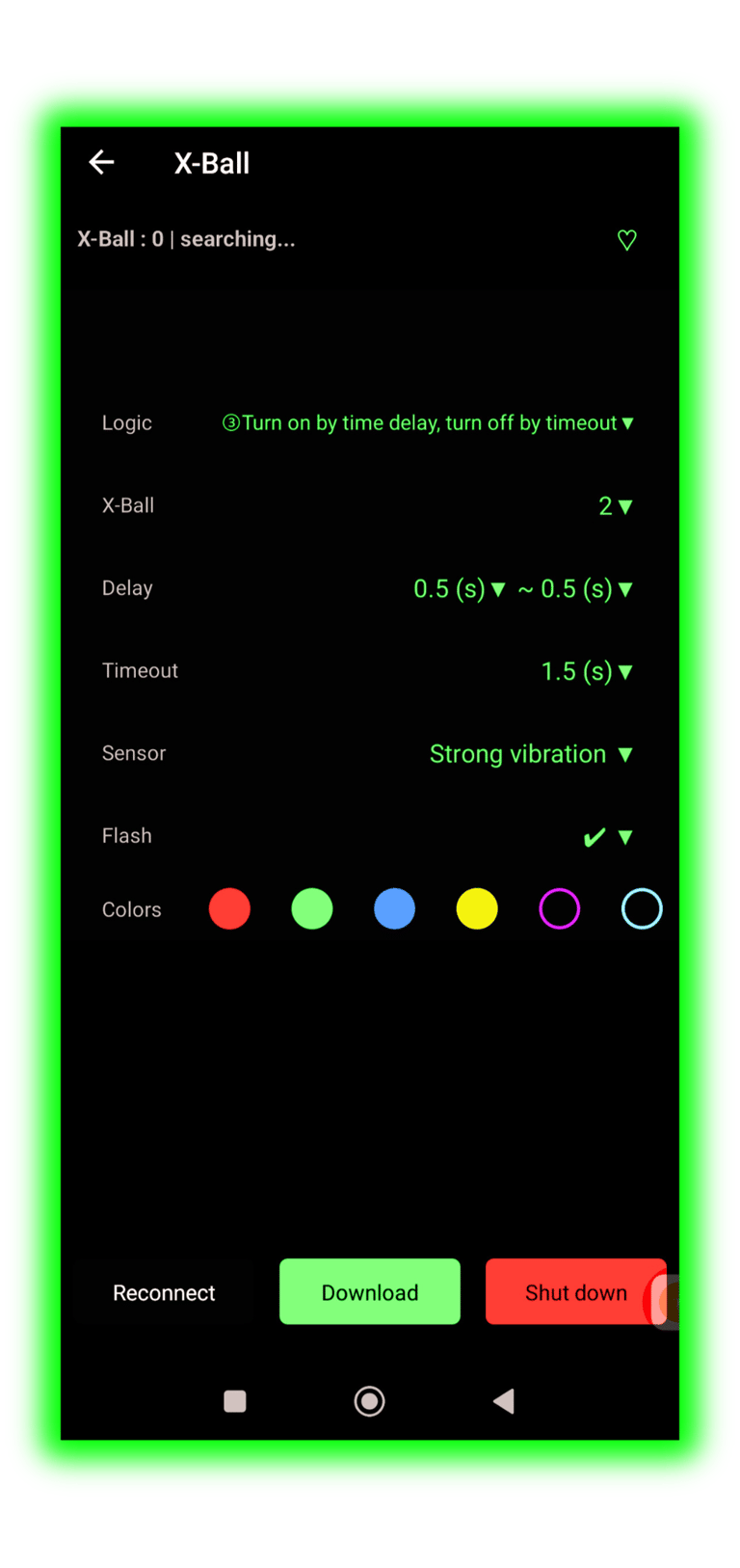 Flash : Whether the Xball emits a flash of light when changing colors.