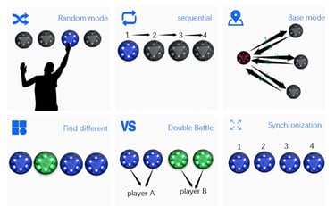 Les Xpods permettent de développer la coordination entre l’œil et la main lors du changement de couleur : Cela permet de réagir plus rapidement, d'effectuer des mouvements précis et de mieux contrôler les actions