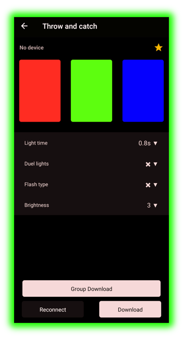 Le programme de lancement (poignée) : Attraper la couleur qui s'allume ou choisie à l'avance du stick avec votre main afin d’améliorer votre coordination œil - main et votre réactivité.